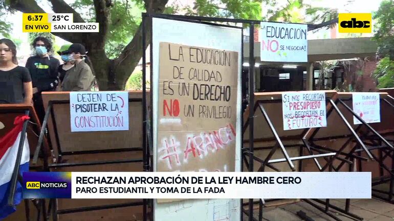Este artículo tiene 1 año de antigüedad Los estudiantes de la Facultad de Arquitectura de la UNA también tomaron la determinación de ir a un paro por tiempo indefinido y tomar la casa de estudios, hasta que el Poder Ejecutivo decida si veta o aprueba el proyecto Hambre cero. Expresaron su preocupación por el financiamiento de Arancel Cero.