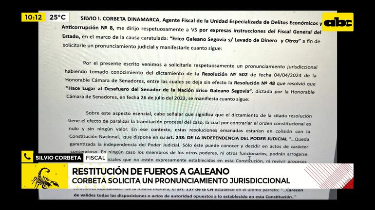 Este artículo tiene 1 año de antigüedad Los fiscales que investigan a Erico Galeano y Hernán Rivas, dos de los parlamentarios beneficiados con la restitución de sus fueros por decisión de la Cámara de Senadores, elevaron una solicitud a jueces a fin de obtener un pronunciamiento jurisdiccional.