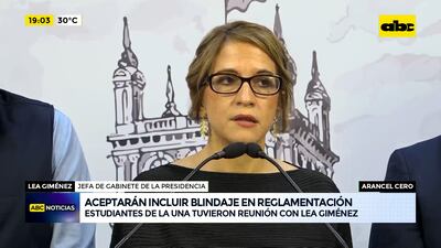 Este artículo tiene 1 año de antigüedad La jefa de gabinete, Lea Giménez lideró una reunión con autoridades de la Universidad Nacional de Asunción en la que comprometió al Gobierno a incluir puntos para blindar el Arancel Cero en la reglamentación de la Ley de Hambre Cero.