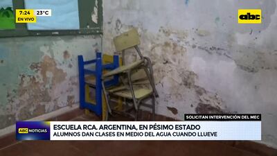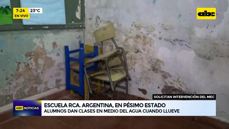 Este artículo tiene 1 año de antigüedad La escuela República Argentina está en condiciones deplorables y en un día lluvioso como el de hoy, las aulas quedan prácticamente inundadas. Continúan esperando la asistencia del MEC.