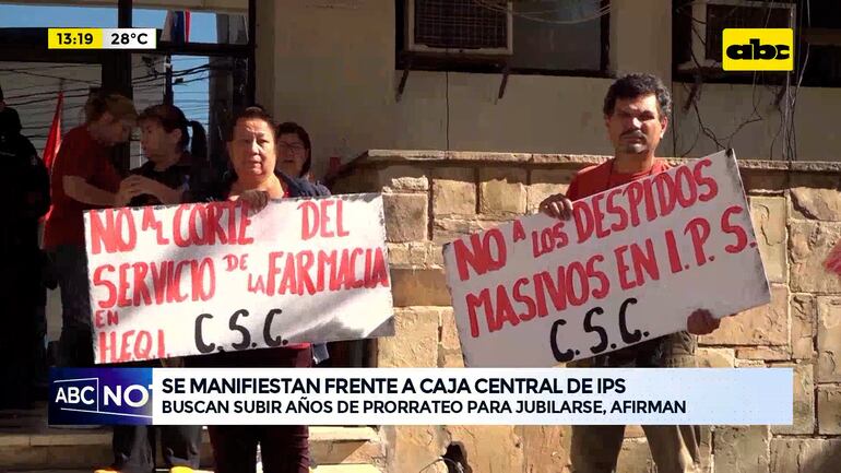 Este artículo tiene 1 año de antigüedad Un grupo de jubilados e integrantes de la Corriente Sindical Clasista realizó un mitin hoy frente a la Caja Central del IPS, con miras a la gran marcha de obreros prevista para el 1 de mayo. Denunciaron que las autoridades del ente pretenden aumentar los años de prorrateo para el cálculo de la jubilación de 3 a 10 años.