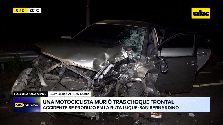 Este artículo tiene 1 año de antigüedad Una motociclista falleció tras un choque frontal contra un automóvil Toyota Corolla en la ruta que une Luque con San Bernardino. Por el impacto con mucha violencia, la víctima murió en el mismo lugar, incluso con desmembramientos. Acudieron al lugar bomberos voluntarios, que nada pudieron hacer para salvar la vida de la trabajadora que salió de su lugar de trabajo e iba a su casa.