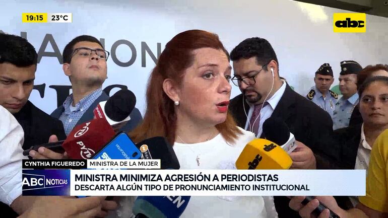 Este artículo tiene 1 año de antigüedad La ministra de la Mujer, Cynthia Figueredo, minimizó la agresión sufrida por periodistas de parte del diputado Yamil Esgaib en sede del Congreso. Señaló que no habrá pronunciamiento institucional de la cartera de Estado a su cargo ya que ellos no se refieren a casos “particulares”.