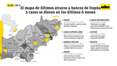 Este artículo tiene 1 año de antigüedad Existe una lista de atracos en el departamento de Itapúa, donde las entidades bancarias son el “blanco” predilecto de los delincuentes, cuyos atracos con diferentes “modus operandi” descolocan a toda la fuerza de seguridad que el gobierno tiene desplegada. Te contamos el historial delincuencial itapuense en este material.
