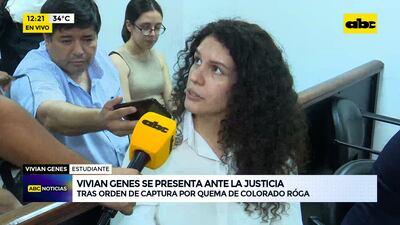 Este artículo tiene 1 año de antigüedad La estudiante universitaria Vivian Genes, una de las procesadas por las protestas sociales que derivaron en la quema de Colorado Róga en 2021, se presentó ante la justicia luego de que se declarara su rebeldía y se impartiera orden de captura en el marco del juicio oral que se le sigue por el caso. La joven y su abogado esperan que el tribunal le conceda medidas alternativas a la prisión.