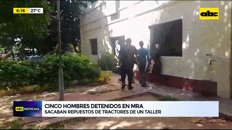 Este artículo tiene 1 año de antigüedad Cargando repuestos de tractores en un camión a manera de robo fueron sorprendidos cinco hombres en el barrio Corumba Cue de Mariano Roque Alonso. Los mismos aparentemente hicieron un boquete en la pared del depósito de un taller y por allí estaban sacando las piezas y repuestos de tractores.