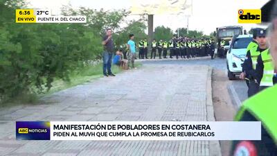 Este artículo tiene 1 año de antigüedad Unas 80 familias en zona del Puente Héroes del Chaco se manifiestan porque las autoridades aún no cumplieron con su promesa de reubicarlos y les exigen que abandonen sus viviendas en la zona. Viviendas que habitan hace años.