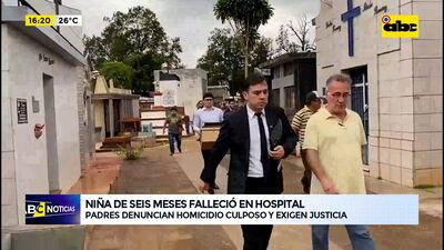 Este artículo tiene 1 año de antigüedad Jóvenes padres presentaron una denuncia innominada ante el Ministerio Público por el presunto homicidio culposo de su hija de seis meses, que fue atendida en el Hospital Pediátrico Municipal (HPM) de Encarnación. Los familiares exigen justicia y que se esclarezca la verdadera causa de muerte de la pequeña, que según el acta de defunción, habría muerto por una broncoaspiración, lo que no coincide con la versión de los padres sobre el hecho.