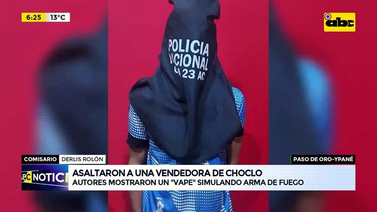 Este artículo tiene 1 año de antigüedad Dos jóvenes presuntos asaltantes fueron reducidos e identificados, por una vendedora de choclo de la zona de Paso de Oro de Ypané realizó la denuncia que fue asaltada, le llevaron 300 mil guaraníes y mostraron un vaper simulando un arma de fuego para el atraco.