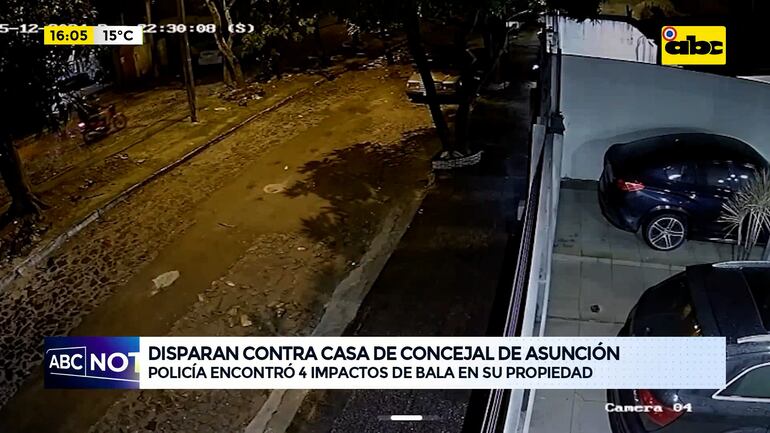 Este artículo tiene 1 año de antigüedad Dos personas que iban a bordo de una motocicleta realizaron disparos contra la casa del concejal de Asunción, René Calonga Acevedo, el pasado domingo en horas de la noche. El hecho fue captado en imágenes de circuito cerrado y está siendo investigado por la policía nacional.