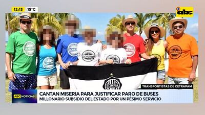 Este artículo tiene 1 año de antigüedad Los miembros del Centro de Empresarios del Transporte de Pasajeros del Área Metropolitana (Cetrapam) ostentan una vida privilegiada, muy lejos de la realidad que soporta la ciudadanía, cada día, con el pésimo servicio que ofrecen como transporte público. Recibieron en poco más de un año, US$ 33,4 millones como subsidio del Estado paraguayo.