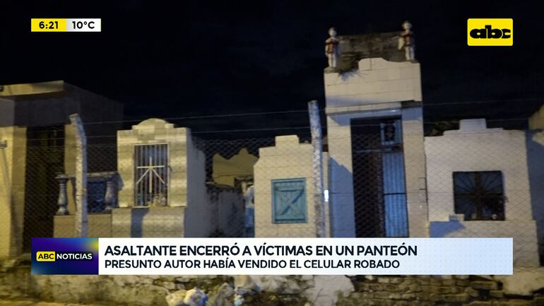 Este artículo tiene 1 año de antigüedad Un conocido delincuente, quien cuenta con numerosos antecedentes penales, fue detenido porque supuestamente asaltó a una abuela de 70 años y a su nieto en pleno cementerio de Capiatá y llevó un celular que luego vendió por 130 mil guaraníes. Las víctimas fueron encerradas en un panteón y tras pedido de auxilio pudieron sacarlas.