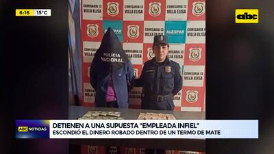 Este artículo tiene 1 año de antigüedad Una mujer fue detenida porque supuestamente robó dinero en efectivo de la vivienda, que también es un negocio, donde trabajaba como empleada doméstica, tras interrogarla y revisar su termo de mate se encontró adentro unos 1.840.000 guaraníes.