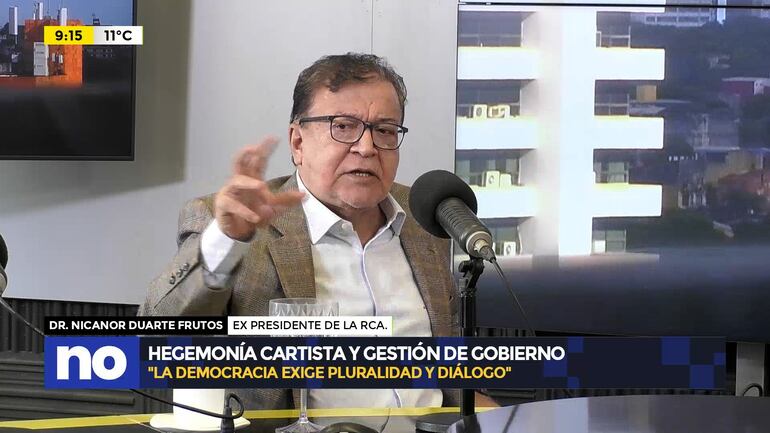 Este artículo tiene 1 año de antigüedad El expresidente de la República, Nicanor Duarte Frutos, señaló que la hegemonía cartista dentro del Partido Colorado existe; y en ese sentido, dijo que es muy importante que no se pierda la capacidad de diálogo frente a una realidad social cada día más polarizada. Refirió que Santiago Peña tiene en su equipo de asesores a personas que se creen superiores.