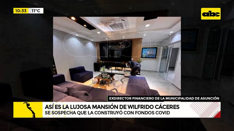 Este artículo tiene 1 año de antigüedad Con un ingreso de mensual que no alcanzaba los 10 millones de guaraníes, Wilfrido Cáceres, el exdirector financiero de la Municipalidad de Asunción, logró edificar una lujosa mansión en el barrio Lote Guasu de San Lorenzo. Un piano de cola, así como una surtida bodega de bebidas, además de un hidromasaje al aire libre, forman parte de la casa - que se presume - pudo haber sido construida con fondos destinados a la contención de la pandemia.
