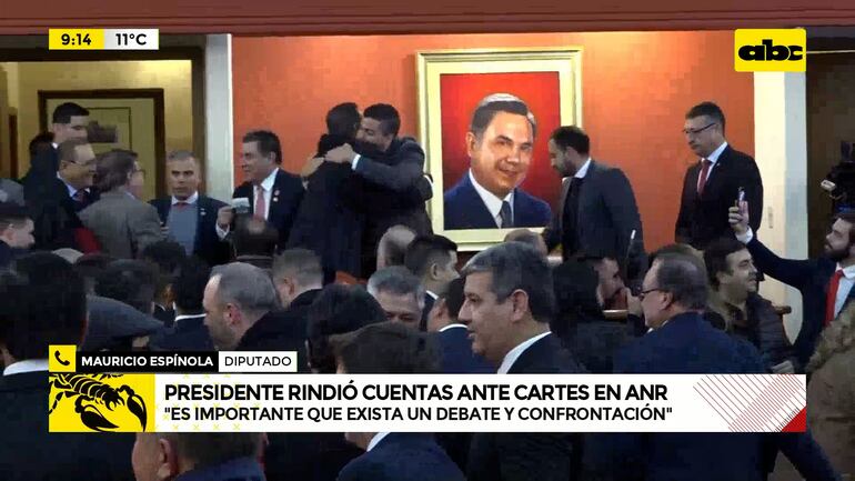 Este artículo tiene 1 año de antigüedad El diputado Mauricio Espínola, quien pertenece al ala disidente del Partido Colorado, opinó sobre el acto desarrollado en la Junta de Gobierno de la ANR, donde el presidente Santiago Peña rindió cuentas ante Horacio Cartes. Para el parlamentario se trató de un acto simbólico de ir a besar el anillo del jefe.