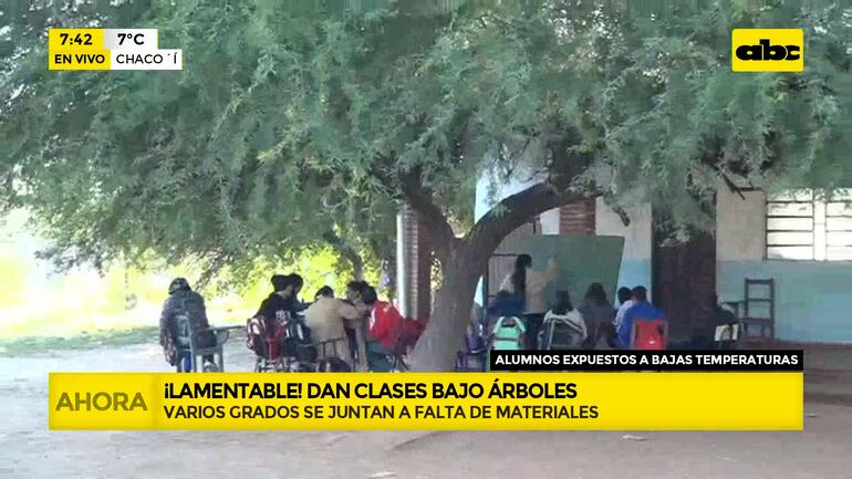 Este artículo tiene 1 año de antigüedad Desde el Ministerio de Educación y Ciencias (MEC) dieron una serie de recomendaciones ante la bajas temperaturas y el aumento de afecciones respiratorias. Sin embargo, la Escuela de Chaco´i, se encuentra olvidada y dan clases a la intemperie por falta de aulas. Los chicos se las ingenian como pueden para mantenerse abrigados ante las bajas temperaturas.