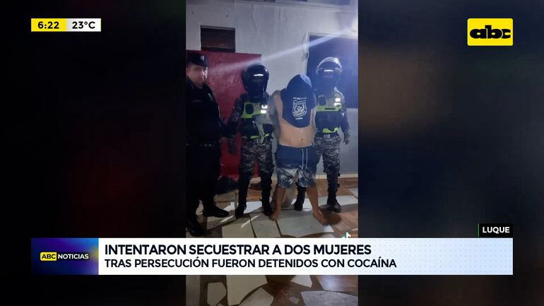 Este artículo tiene 1 año de antigüedad Dos hombres intentaron secuestrar a dos mujeres en Luque. Estas dieron aviso a la Policía y se inició una persecución que culminó en Roque Alonso. Del poder de ambos hallaron una pequeña dosis de cocaína.