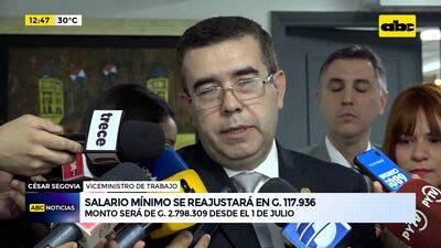 Este artículo tiene 1 año de antigüedad El Consejo Nacional de Salario Mínimo estableció un reajuste de G. 117.936 para el sueldo, desde el próximo 1 de julio. Esta recomendación será elevada ahora al Poder Ejecutivo, el cual deberá emitir el decreto para antes de esa fecha.