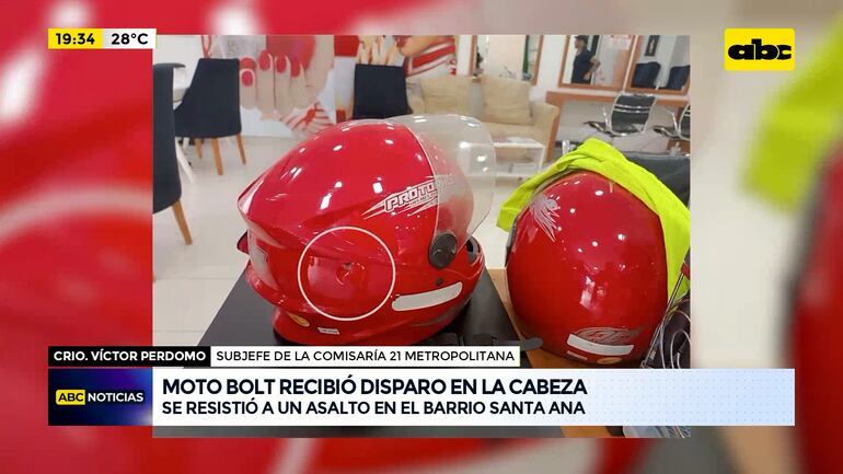 Este artículo tiene 1 año de antigüedad Un conductor de moto Bolt recibió un disparo en la cabeza cuando acudió a un pedido sobre las calles 34 Proyectada y Antequera del barrio Santa Ana de Asunción, en la mañana del viernes. Apenas llegó al lugar, tres personas le salieron al paso, uno de ellos con arma de fuego en mano, intimándolo a que entregue dinero y demás pertenencias. Cuando el trabajador pegó la vuelta e intentó escapar escuchó que se produjo un disparo, pero no se percató de que el proyectil había penetrado en la cabeza.
