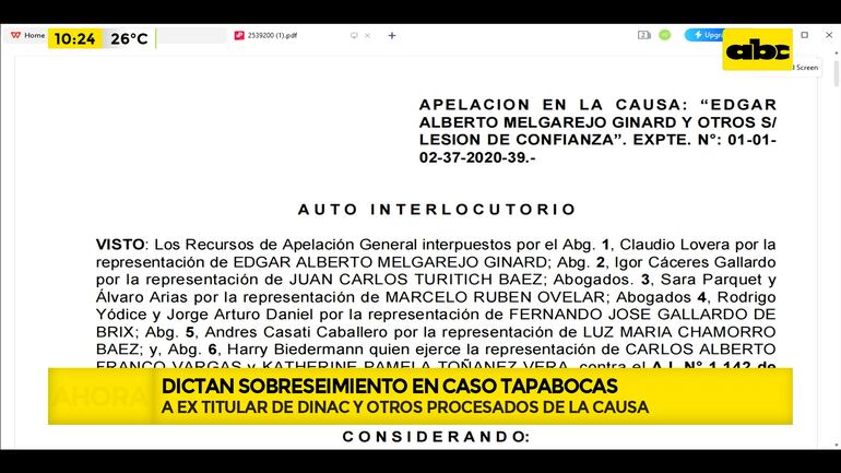 Este artículo tiene 1 año de antigüedad Cinco personas, entre ellas el exdirector de la Dinac, Edgar Melgarejo, quedaron sobreseídas en el caso conocido como “tapabocas de oro”. Según la Fiscalía, hubo un daño patrimonial de G. 119.960.000 con la compra sobrefacturada de tapabocas durante la pandemia de Covid-19.