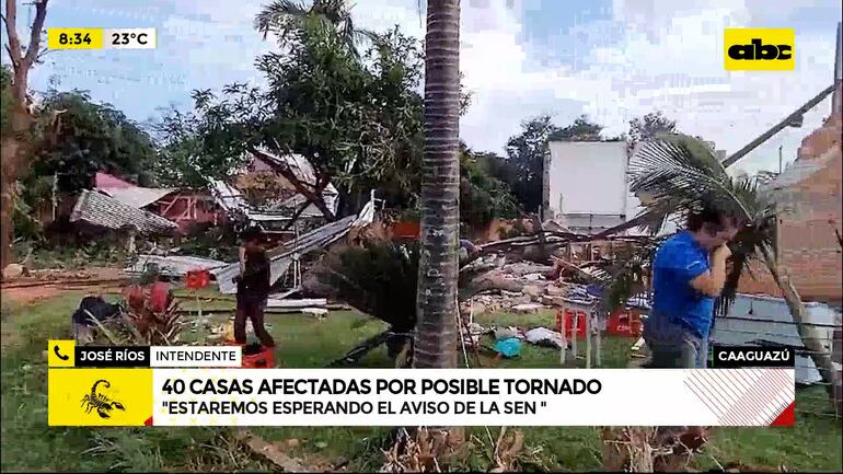 Este artículo tiene 1 año de antigüedad Decenas de familias fueron afectadas por un aparente tornado que destruyó por lo menos 40 viviendas en las compañías Itacurubí y Cantera Boca de la ciudad de Caaguazú. El intendente José Ríos indicó que las pérdidas ocasionadas por el fenómeno climático rondarían los G. 500 millones.
