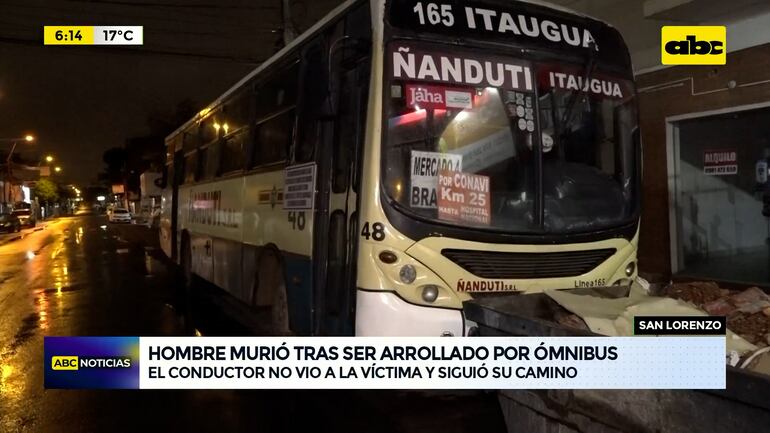 Este artículo tiene 1 año de antigüedad Un hombre falleció tras ser arrollado en San Lorenzo por un ómnibus de transporte público de la empresa Ñanduti SRL que iba con destino a Itauguá. El conductor del bus quedó detenido en la Comisaría Primera de San Lorenzo y relató que no vio al transeúnte y por eso siguió camino tras el accidente. Una conductora avisó a la policía del arrollamiento y allí comenzó la intervención.