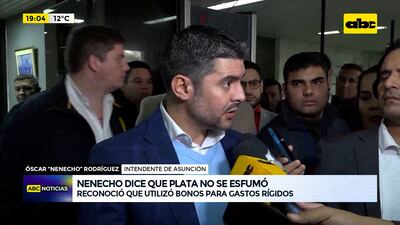 Este artículo tiene 1 año de antigüedad El intendente de Asunción Óscar Nenecho Rodríguez y su equipo intentaron justificarse ante la Junta Municipal, durante cinco horas, acerca del destino de unos 500 mil millones de guaraníes de la comuna obtenidos de la emisión de bonos, que no fueron ejecutados ni figuran en las cuentas municipales. Reconoció que utilizaron parte de los recursos para pago de salarios y a proveedores.