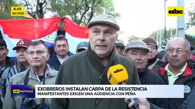 Este artículo tiene 1 año de antigüedad Exobreros de Itaipú siguen en movilizaciones tanto en Hernandarias como en Asunción, donde ya instalaron su “carpa de resistencia” en cercanías de Mburuvicha Róga. Los manifestantes exigen una audiencia con Santiago Peña.