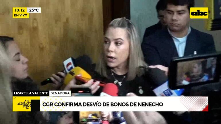 Este artículo tiene 1 año de antigüedad La senadora cartista Lizarella Valiente, esposa del intendente de Asunción Óscar Rodríguez, dijo que aún no tuvo acceso al informe de la Contraloría que confirma el desvío del dinero de los bonos de la Municipalidad; no obstante, indicó que “confía totalmente” en la inocencia de su marido.