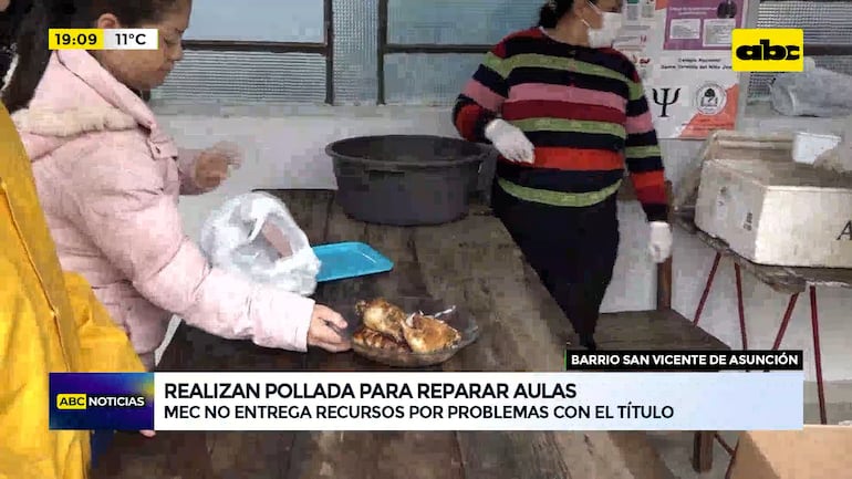 Este artículo tiene 1 año de antigüedad Los padres de un Colegio en el Barrio San Vicente de Asunción apelaron a una pollada para obtener recursos y seguir reparando la institución. El MEC no les entrega los recursos por problemas con el título de propiedad de la institución.