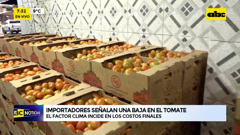 Este artículo tiene 1 año de antigüedad La caja de tomates de 20 kilos hoy cuesta G. 200.000 en el Mercado de Abasto, uno de los más importantes de la ciudad de Asunción. Pese a que en los supermercados sigue más elevado el precio del tomate, en los mercados se mantiene en G. 10.000.