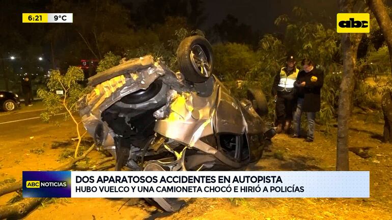 Este artículo tiene 1 año de antigüedad Dos accidentes uno tras otro sobre la autopista Silvio Pettirossi en la zona de Ñu Guazú. Un conductor volcó solo su vehículo y mientras los policías tomaban declaraciones a un testigo, una camioneta Toyota Hilux chocó contra un automóvil y quedaron heridos dos policías.