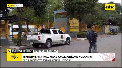 Este artículo tiene 1 año de antigüedad A cinco meses de la última fatal fuga de amoniaco en la fábrica de embutidos Ochsi de San Lorenzo, este lunes reportaron una nueva fuga en el mismo sitio. Por otro lado, el abogado de la firma, Óscar Brítez, señaló que no existió una nueva fuga de amoniaco y lo que ocurrió fue que durante una limpieza que se estaba realizando en el lugar, los empleados del lugar se habrían sentido mal por lo que fueron trasladados hasta el IPS de Ingavi para ser atendidos.