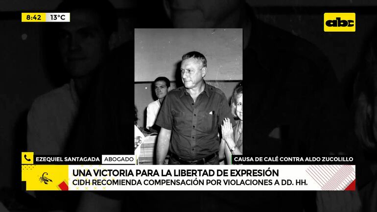 Este artículo tiene 1 año de antigüedad La Comisión Interamericana de Derechos Humanos concluyó que en el año 2005 el Estado de Paraguay violó, en perjuicio del director del diario ABC Aldo Zuccolillo, sus derechos de libertad de pensamiento y expresión, consignados en la Convención Americana de Derechos Humanos. La CIDH recomendó a la Corte dictaminar respecto a este caso y recomendar al Estado Paraguayo dejar sin efecto la sanción en homenaje a su memoria, un desagravio público, una compensación económica y de satisfacción a la familia de Zuccolillo.