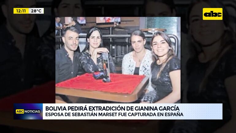 Este artículo tiene 1 año de antigüedad La Fiscalía de Bolivia anunció este jueves que solicitará la extradición de Gianina García Troche, esposa del presunto narcotraficante uruguayo Sebastián Marset, quien fue capturada en España, para que sea procesada por los delitos cometidos en la ciudad oriental de Santa Cruz, afirmó el fiscal general del Estado boliviano, Juan Lanchipa, en una conferencia de prensa en la ciudad de Sucre, capital de Bolivia y sede del Órgano Judicial.