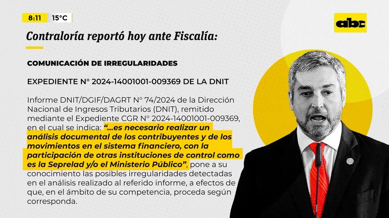 Este artículo tiene 1 año de antigüedad La Contraloría General de la República reportó a la Fiscalía General del Estado presuntas irregularidades en la Declaración Jurada del expresidente de la República, Mario Abdo Benítez. Alrededor del 90% de las utilidades generadas por dos empresas en las que Abdo es accionista mayoritario fueron destinadas a reservas, lo cual implica que no fueron distribuidas y no se visualizan en sus declaraciones juradas de bienes.