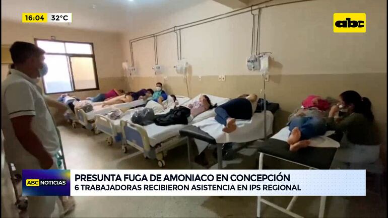 Este artículo tiene 1 año de antigüedad Seis trabajadoras del Frigorífico Concepción fueron trasladadas hasta el Instituto de Previsión Social (IPS) local, luego de presentar síntomas relacionados con una supuesta fuga de amoniaco en la fábrica. El director del IPS contó que no están graves; no obstante, permanecerán en observación durante todo el día.