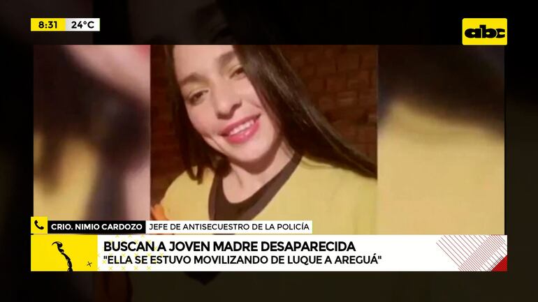 Este artículo tiene 1 año de antigüedad Una joven madre de 21 años está desaparecida desde hace casi una semana. Lo último que se supo de ella fue que se dirigía a lo de unas amigas en la zona de Areguá, pero no llegó porque según unos audios desesperados que envió a su familia, había sido asaltada por dos hombres que la abandonaron en un descampado. La Policía Antisecuestro está movilizada por el caso y no descarta detenciones en las próximas horas.