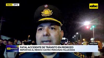 Este artículo tiene 1 año de antigüedad En la tarde de este domingo se registró un accidente de tránsito en la compañía Pedrozo de Cordillera, en la que, al menos, cuatro personas perdieron la vida. Los cuatro fallecidos se encuentran en el vehículo que quedó atrapado debajo del camión de gran porte, por lo que aún no pudieron ser rescatados.