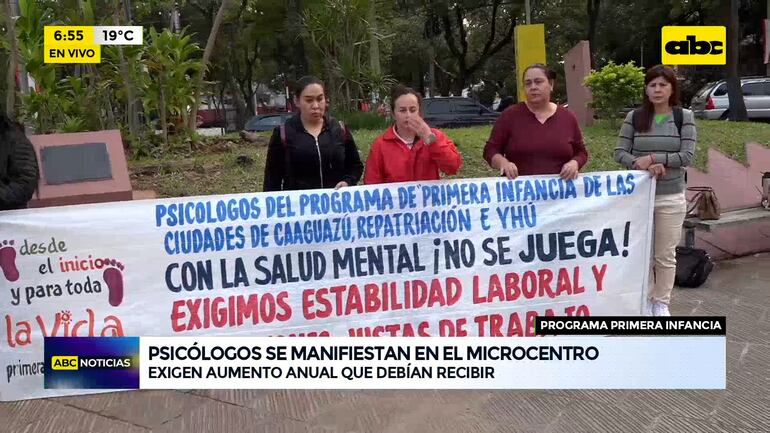 Este artículo tiene 1 año de antigüedad Desde muy temprano, se movilizan en el centro de Asunción psicólogos del Programa Primera Infancia del Ministerio de Educación (MEC). Los profesionales llegaron desde varios puntos del país para exigir “estabilidad laboral y condiciones justas de trabajo”.