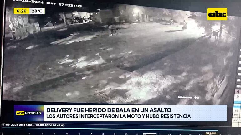 Este artículo tiene 1 año de antigüedad Un joven que trabaja como delivery recibió un disparo con arma de fuego en el muslo derecho tras una tentativa de asalto en la Fracción El Dorado de Limpio. La víctima estaba llevando un pedido en motocicleta cuando fue interceptado por dos hombres también a bordo de un biciclo.