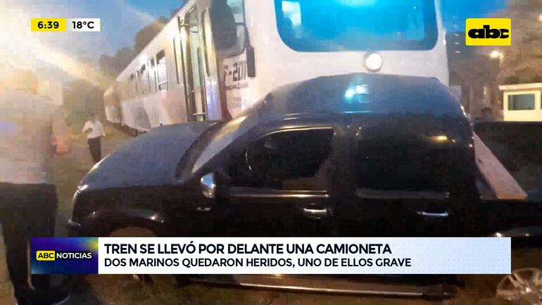 Este artículo tiene 1 año de antigüedad Un tren internacional que brinda el servicio de transporte de pasajeros entre Encarnación (Paraguay) y Posadas (Argentina) chocó contra una camioneta en el acceso a la base del Área Naval de Itapúa y la arrastró por varios metros. Según los primeros reportes, dos marinos quedaron heridos, uno de ellos grave, por lo que fue derivado al Hospital Regional de Encarnación. En el tren iban 90 pasajeros, pero ninguno registró heridas.