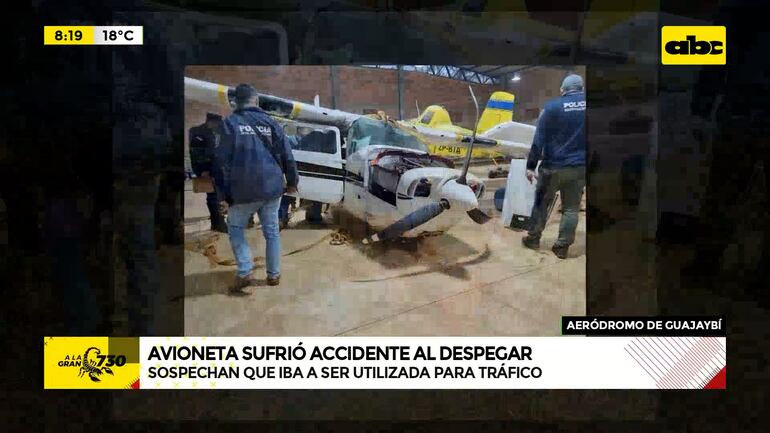 Este artículo tiene 1 año de antigüedad Una avioneta sufrió un aterrizaje de emergencia en una pista privada en Guayaibí, San Pedro, donde meses atrás se precipitó la aeronave que trasladaba al diputado Walter Harms. A las autoridades llama la atención que a la avioneta no contaba con asientos, por lo que se sospecha que era utilizada para transportar estupefacientes.