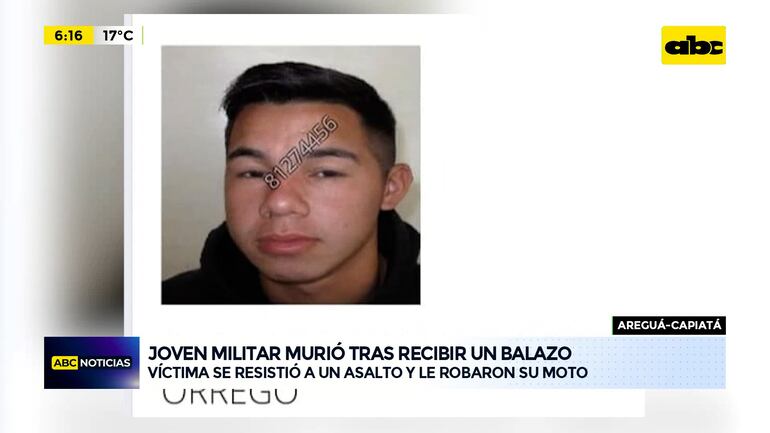 Este artículo tiene 1 año de antigüedad Un personal militar falleció tras recibir un balazo a la altura del hombro izquierdo cuando se resistió a un asalto, aunque finalmente los delincuentes se llevaron su motocicleta. Más tarde, mediante GPS se pudo recuperar el biciclo y hubo personas detenidas quienes tendrían participación en el trágico suceso. El asalto ocurrió en la zona de Costa Fleitas, Areguá, en la zona del Puente de Hierro de un carril, límite con Capiatá.