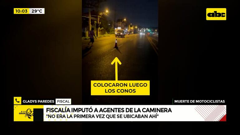 Este artículo tiene 1 año de antigüedad La fiscala Gladys Paredes imputó por homicidio culposo a los cinco inspectores de la Patrulla Caminera que montaron una barrera sobre la ruta PY01, donde murieron dos motociclistas tras chocar contra la parte trasera de un camión que estaba siendo retenido.