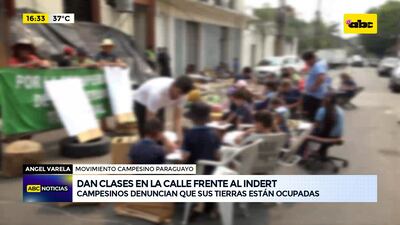 Este artículo tiene 1 año de antigüedad Campesinos de la zona de Tava’i, Caazapá, que acampan desde hace un mes y medio frente al Indert, decidieron traer a sus hijos para que den clases frente mismo a la institución. Esto como forma de protesta en reclamo por sus tierras que actualmente son arrendadas por políticos de la zona, según denuncian.