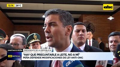 Este artículo tiene 1 año de antigüedad El presidente Santiago Peña dijo que la presencia del senador cartista Gustavo Leite, vinculado a una ONG liderada por su esposa, en la comisión bicameral que investiga a organizaciones no gubernamentales es “decisión del Senado” y que no le corresponde al Ejecutivo decidir sobre el tema.