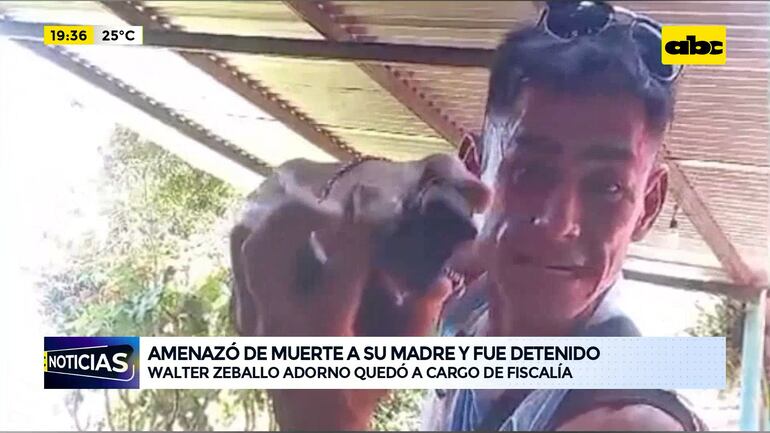 Este artículo tiene 1 año de antigüedad La Policía detuvo a Walter Zeballo Adorno, de 37 años, en la localidad Presidente Franco por presunta amenaza de muerte enseñándole un arma de fuego a su madre, quien grabó este vídeo para utilizarlo como evidencia. El hombre cuenta con antecedentes penales por hurto y hurto agravado.