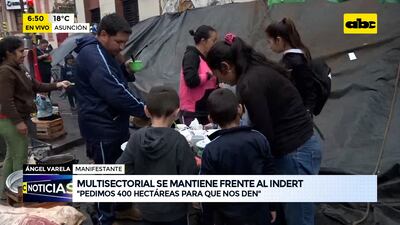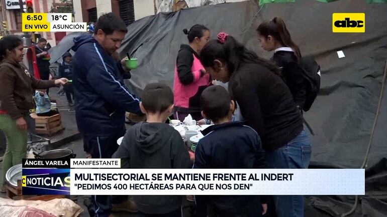Este artículo tiene 1 año de antigüedad Desde hace 67 días, miembros del Movimiento Campesino Paraguay, provenientes de Canindeyú y Caazapá, están instalados frente al Instituto Nacional de Desarrollo Rural y de la Tierra (Indert) para exigir tierras para el cultivo de productos. Los niños que acompañan a sus padres en la protesta dan clases en una improvisada aula de carpas.